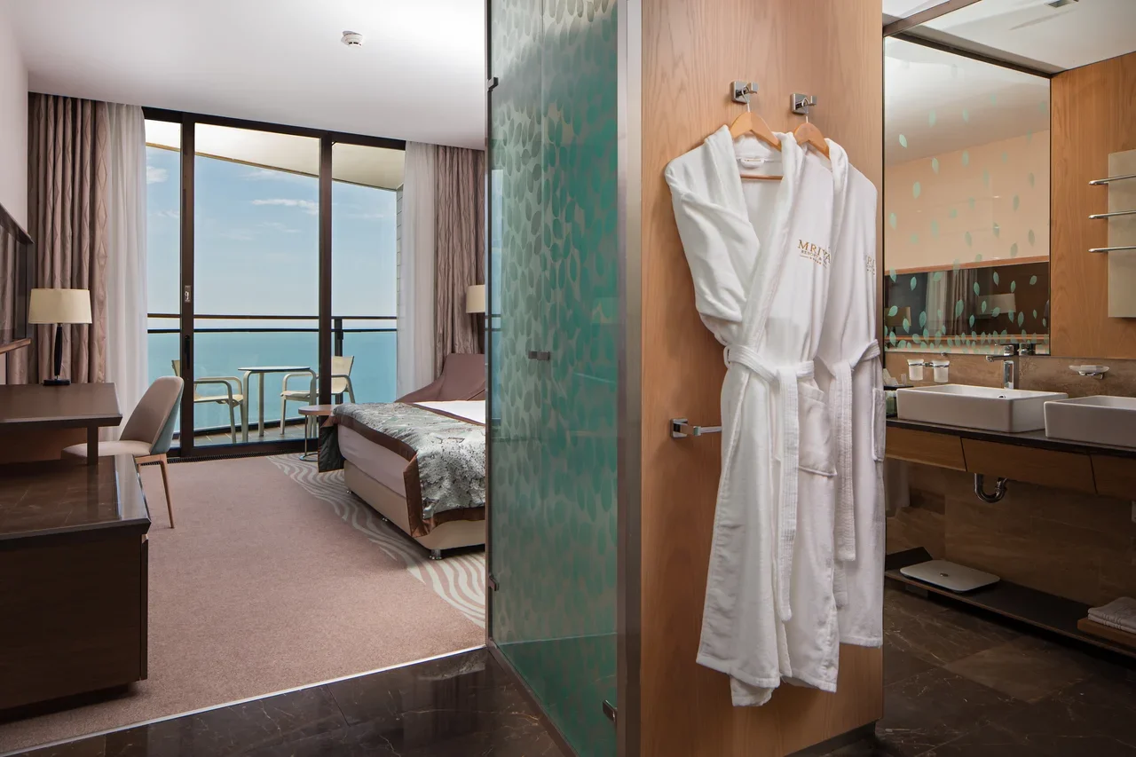 В красивом интерьере Семейного люкса мы воплотили атмосферу домашнего уюта, сохранив функциональность и комфорт премиального гостиничного номера. Современный дизайн спальни и гостиной продуман в деталях — здесь все необходимое для общения и уединенного отдыха с семьей. Фантастические панорамы природы из окон вашего номера, утонченный сервис и невероятная территория комплекса подарят вам незабываемые эмоции от пребывания на курорте Мрия.
