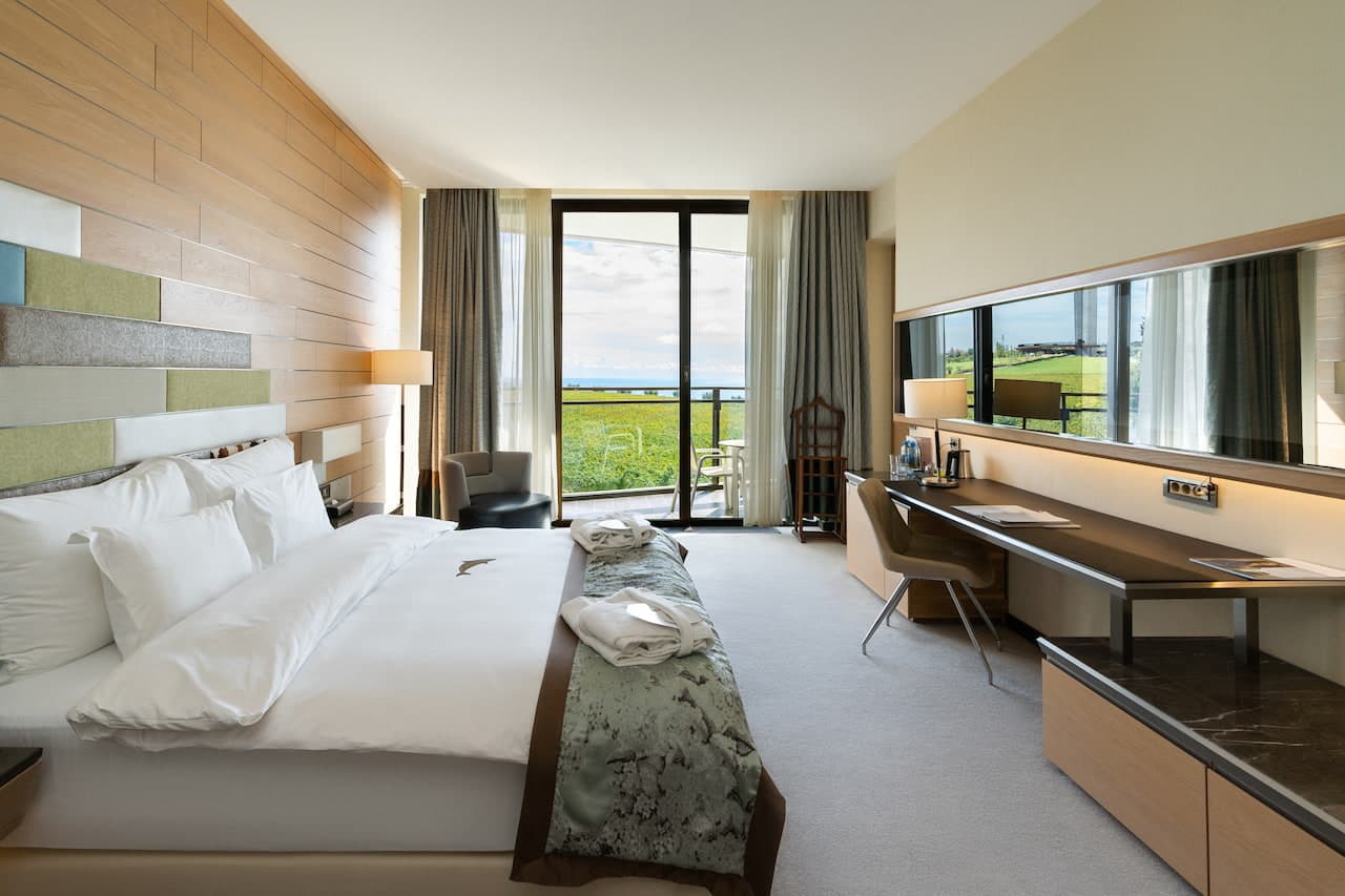 Элегантный номер предлагает гостям огромную гостиную, две спальни с собственными санузлами, обзорный балкон с террасой с шезлонгами и восхитительные виды Крымской Ривьеры.
