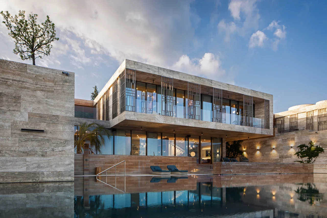 Концептуальное пространство двухуровневой виллы сочетает актуальный авторский дизайн с инновационными технологиями, подарит вам ощущение безупречного комфорта. В оформлении интерьера использованы натуральные материалы, а палитра цветов, наполненная дизайнерским светом, создает неуловимую атмосферу курортного отдыха на краю виноградников. Бирюзовый, золотистый бежевый, серый и, конечно же, марсала. Море, пляж и вино — что может быть романтичнее?