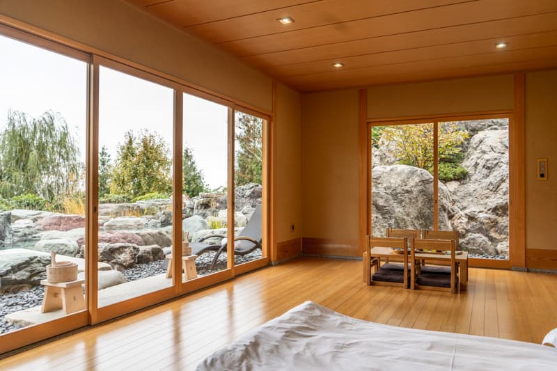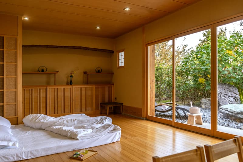 Во внешней простоте и минимализме апартаментов скрыты традиции и философия древнего Востока. Японцы верят, что именно пустота составляет суть вещей и, чем чище пространство, тем богаче и глубже внутреннее содержание. Матрас-футон, циновки-татами, столик для чайных церемоний и личный онсэн (горячая купель) — все необходимое и ничего лишнего. Отключите телефон, остановитесь.