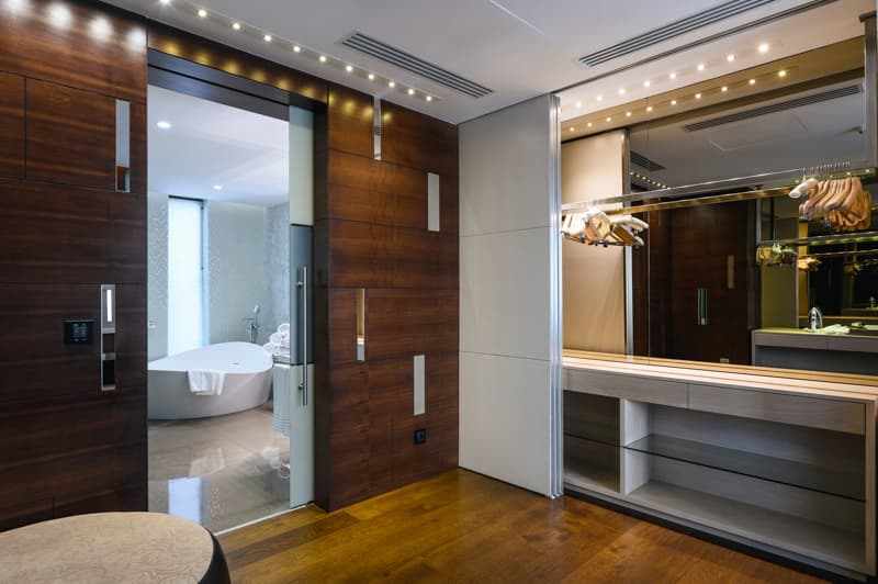 Мрамор, дерево, насыщенные акценты и сложные элементы декора создают в гостиной роскошную атмосферу. Технологичная кухня восхищает функциональностью. В элегантных светлых спальнях уютно и тихо — ничто не помешает вашему отдыху.